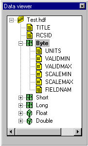 Each HDF data object has one or several HdfExplorer associated icons. These icons are displayed in the data window as part of the tree items.