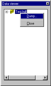 The dump window lets you analyse the HDF contents by tag and reference. Just click with the mouse right button on the root tree item and choose the dump menu.