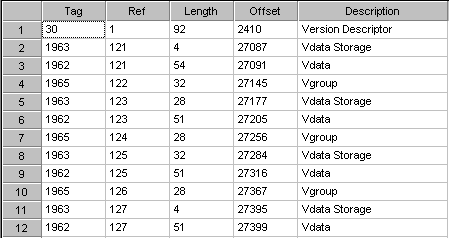 The HDF tag and reference numbers are displayed in a grid. Addicional information on the tag and reference properties of the HDF file can be found on the NCSA HDF userīs guide.