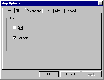 In the Draw options dialog box the user can choose to draw the color of each cell and to draw a grid surrounding each cell.