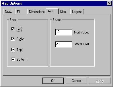 In the Axis options dialog box the user can choose to visualize the space legend in the map.