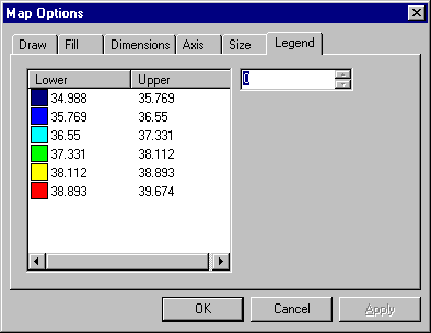 In the Legend options dialog box it is possible to change the values of the legend. To change a value, click on the color, and the enter the new value in the input box. This option is only available for the SDS discrete map view.